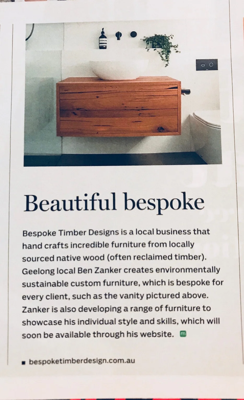 Founded by Geelong local Ben Zanker, Bespoke Timber Design is a carpentry and joinery business built on a strong passion for the craft. Ben and his team pride themselves on creating custom furniture of exceptional quality, employing traditional woodworking techniques for modern designs using native Australian hardwood.